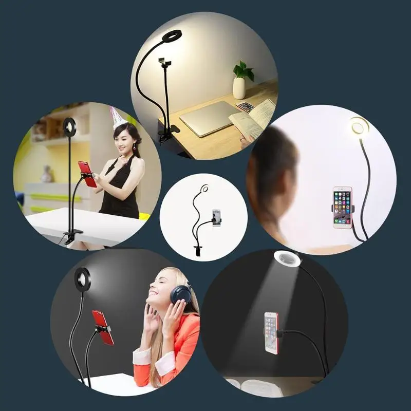 HIGH QUALITY alloet 2 in 1 360 Degree Long Arm Flexible Desktop Metal Bracket Stand Holder with Dimmable LED Fil