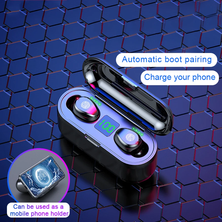 Wireless Earphone Bluetooth 5.0 F9 TWS Wireless Bluetooth Headphone LED Display With 2000mAh Power